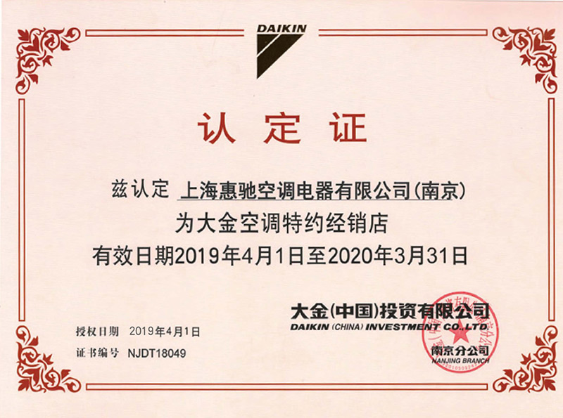 麥克維爾空調(diào)經(jīng)銷商證書